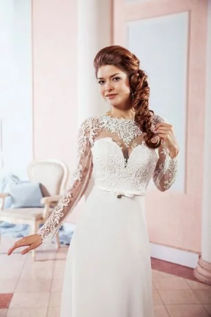 Свадебное платье с рукавами, свадебное платье 2017, телесное свадебное платье, свадебные платья с открытой спиной
