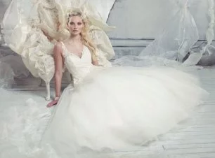 Множество воланов в образе невесты