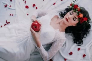Образ невесты: белоснежное платье и золотые аксессуары в античном стиле