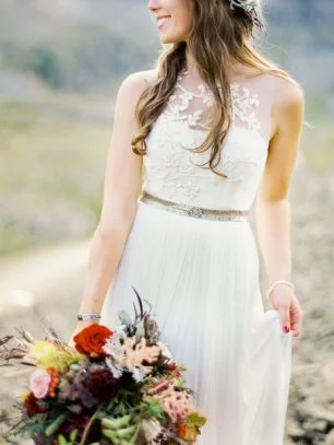 Платье невесты с замысловатыми беретелями