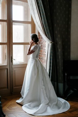 свадьба, утро, невеста, замок бип, платье, окно