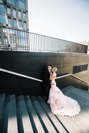 Розовое воздушное платье невесты